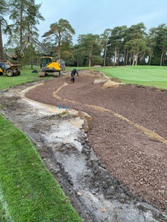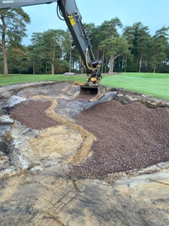 Phase 3 of the bunker project is well underway, with work on the 1st, 2nd, 10th & 18th holes progressing well. The bunkers have been shaped, with drainage and stone bases currently being installed. Some images below capture the work that has been completed to date: