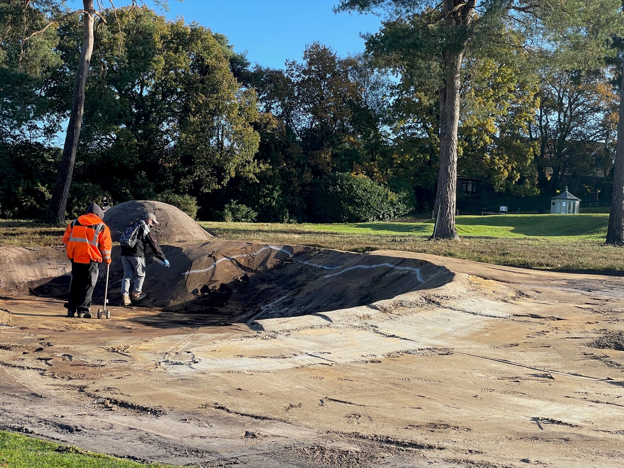 Today's bunker work will be on holes 1,8 & 18 with forward tees and temporary greens in use. Instillation of rubber lining along with continued drainage and stone base layer is being done today.